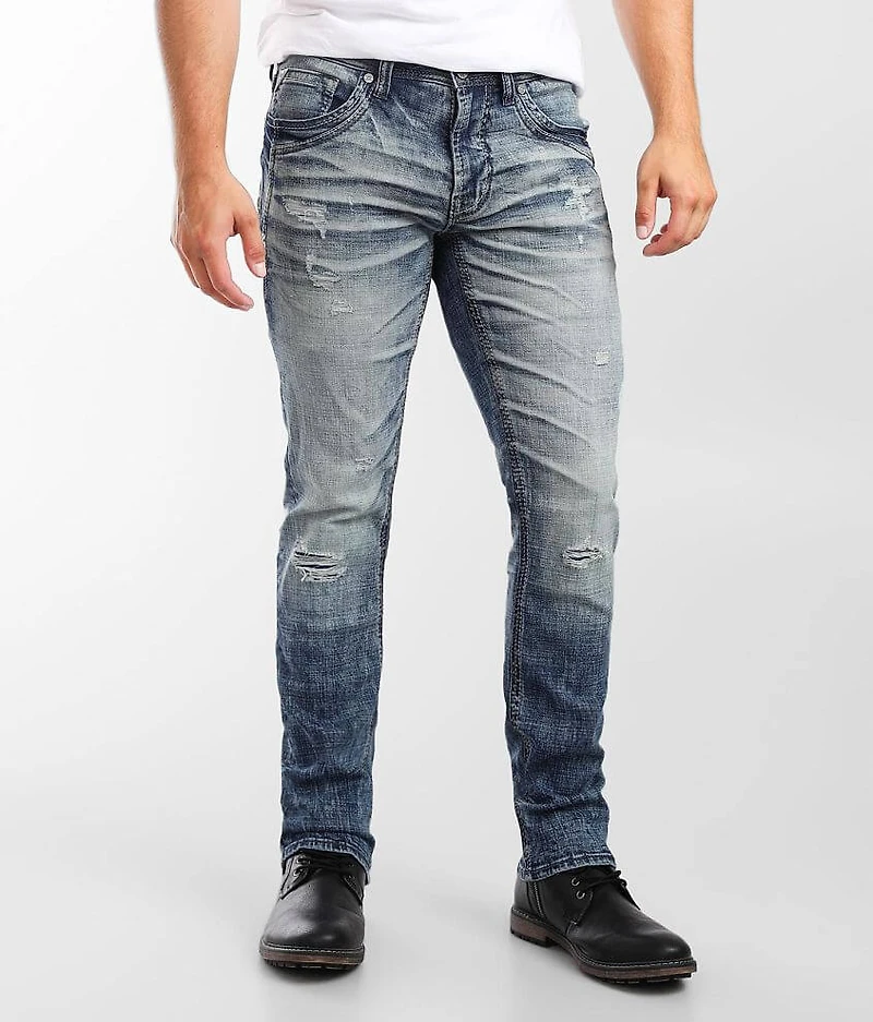 Slim fit jean Performance stretch fabric for a higher level of flexibility Straight from knee to hem Low rise, 15" bottom opening Embroidery on pieced and darted back pockets Hand sanding, whiskering, destruction with fill yarn and denim backing details Zip fly Shoe sku 961189 Model Info: Height: 6' | Chest: 41 1/2" | Waist: 34" | Hip: 41" | Wearing Size: 32x32