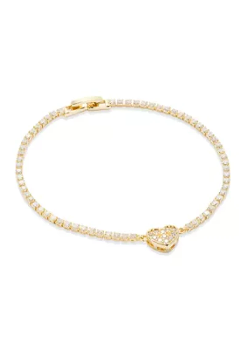 Show your heart with this tennis bracelet from Belk Silverworks, a shimmering testament to your refined taste. Lobster closure Imported Belk Exclusive Material & Care Gold plated metal Clean with a soft cloth