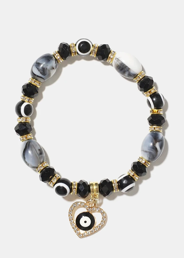 Footnotes Womens Black Glass 10K Gold Over Brass Evil Eye Beaded Bracelet