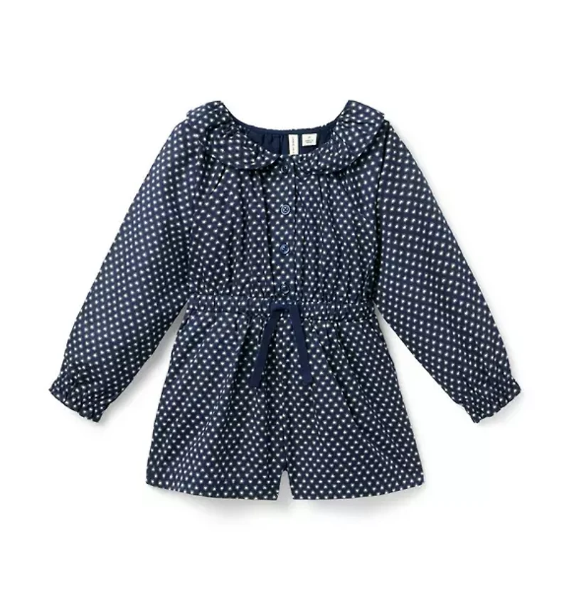 A romper with details that have our heart, from the ruffle collar and cuffs to the allover heart print. Designed with pockets for the little things. 100% Cotton Batiste; Lining: 100% Cotton Fully Lined Long Sleeve Half Button Placket Elasticized Waist; Front Pockets Machine Washable; Imported