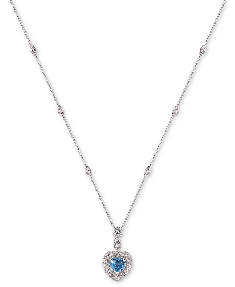 Choose from amethyst, garnet or swiss blue topaz in a heart-shaped pendant on this pretty silver tone necklace finished with twinkling white topaz.