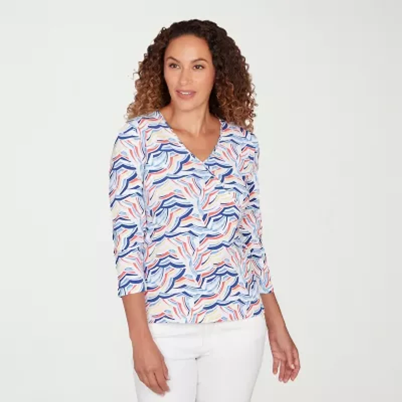 Hearts Of Palm Embellished Womens V Neck 3/4 Sleeve T-Shirt
