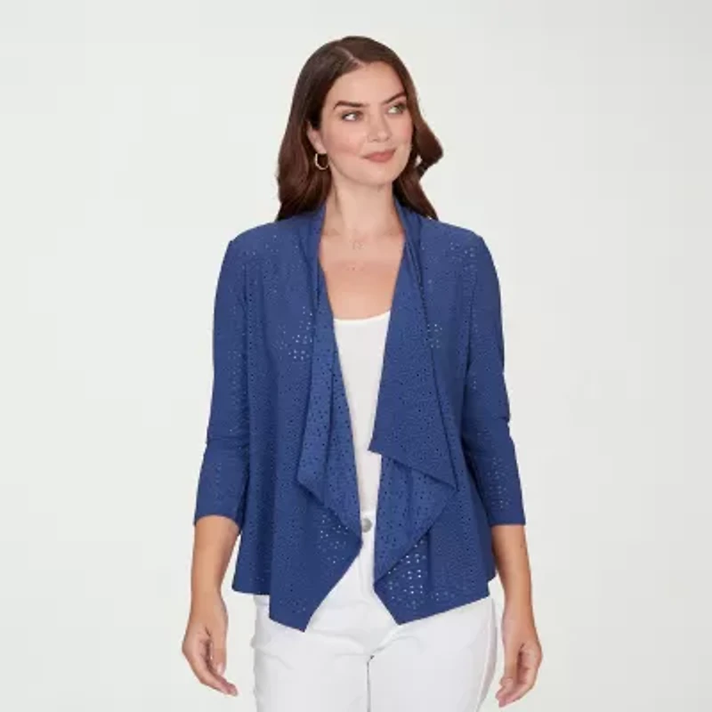 Hearts Of Palm Open Front Eyelet Womens 3/4 Sleeve Cardigan