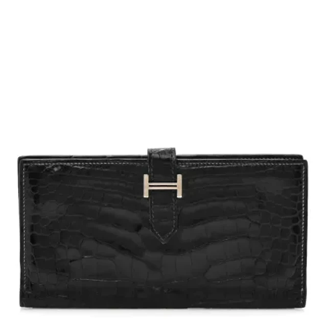 Hermes Shiny Alligator Bearn Wallet Black -FINAL SALE NO RETURNS