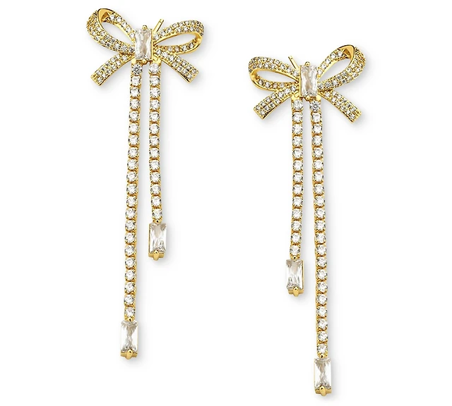 Heymaeve 18k Gold-Plated Cubic Zirconia Bow Linear Drop Earrings