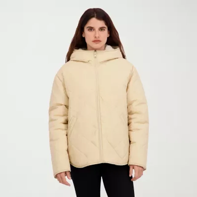Dockers Womens Hooded Water Resistant Midweight Puffer Jacket