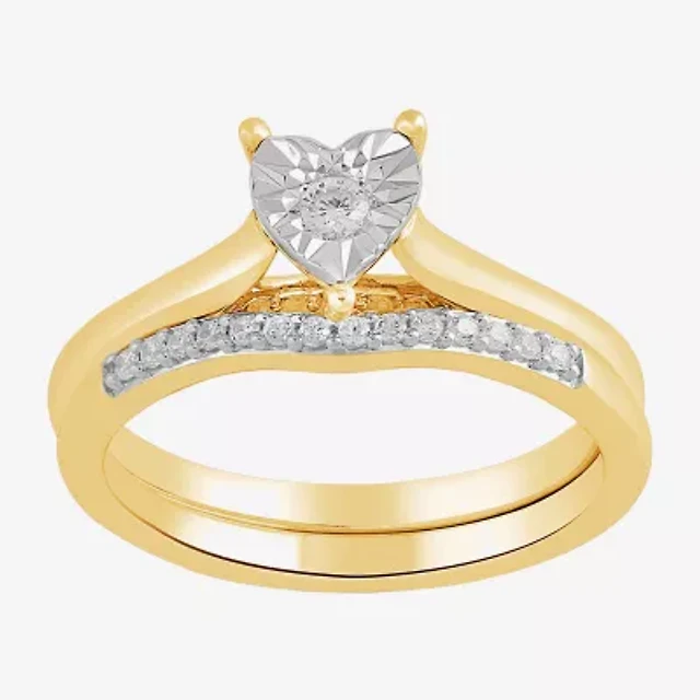 (H,I1-I2) Womens 1/4 CT. T.W. Lab Grown White Diamond 14K Gold Over Silver Heart Bridal Set