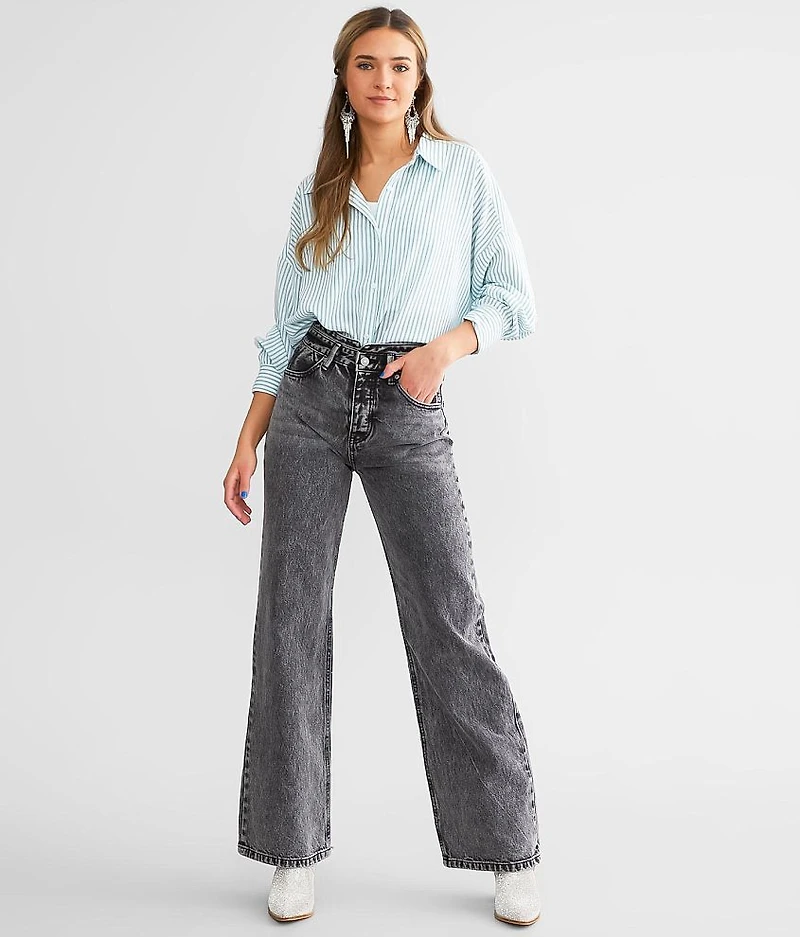 100% Cotton (Non-Stretch) - Rigid denim holds its shape and fades beautifully over time, this jean will be your go to for years to come. Finding the perfect size in these fits is all about your preference. For a bigger, looser look you may want to size up or for a more fitted look, order true to size. High rise Hidden button fly Relaxed through the hip and thigh 20" flared bottom opening Pieced waistband and destruction details