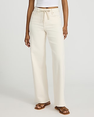 High Waisted Ivory Wash Drawstring Wide Leg Jeans