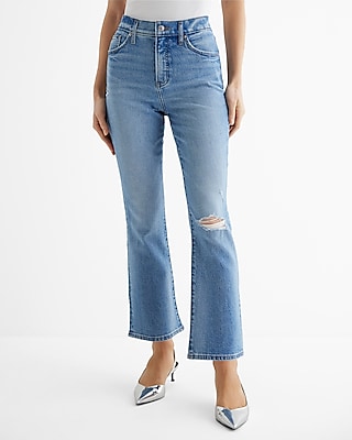 High Waisted Light Wash Ripped Cropped Flare Jeans in Franklin, TN