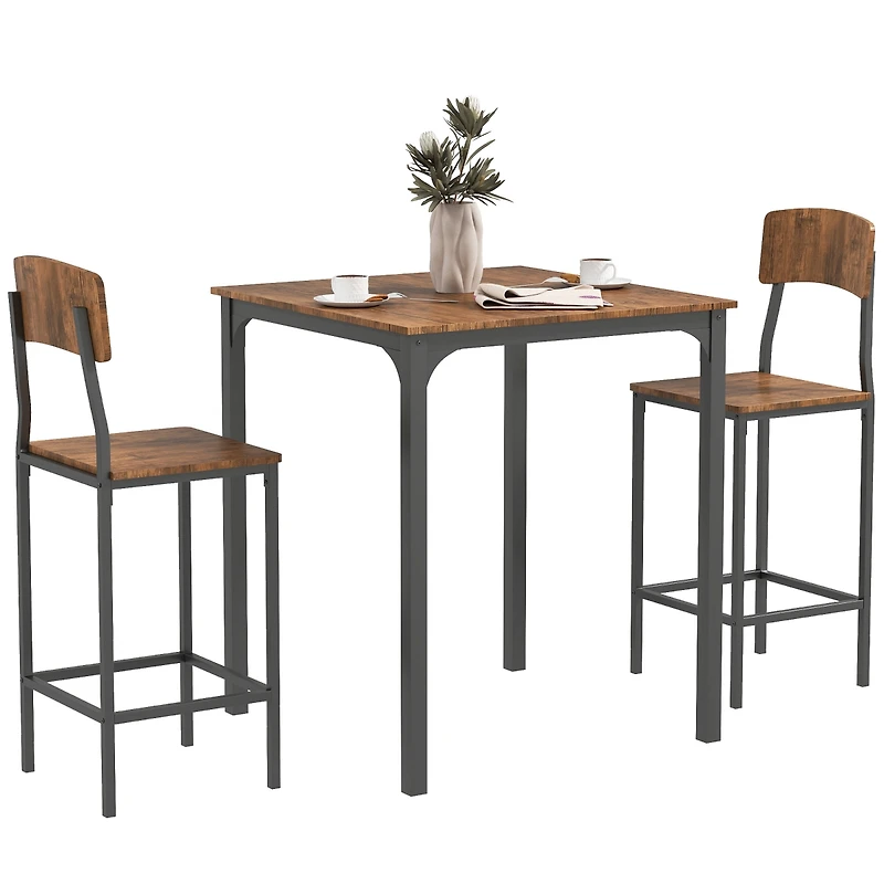 Homcom Three Piece Indoor Tabletop Collection w/Matching Seats Metal Legs for Stability
