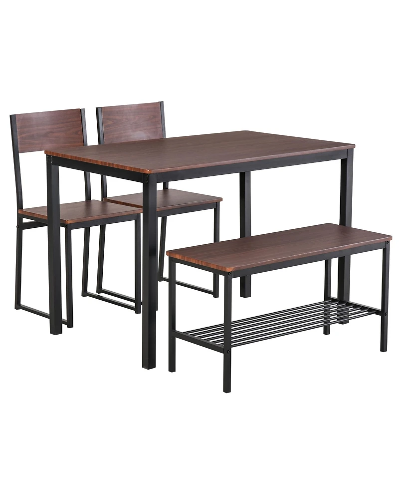 Make meal times better and clean-up a breeze with this Homcom kitchen table and chairs for 4. With an industrial design, the dark brown and black color of the dining room table set for 4 is stylish and distinct. Push the kitchen chairs and bench under the table to save space in your dining room. Each frame is made from steel for strength and fitted with thick Mdf seats and tabletop. This dining room set features four chairs and a large table - enough room for the whole family. Create a simple home decor space with this dinette set for 4 from Homcom.