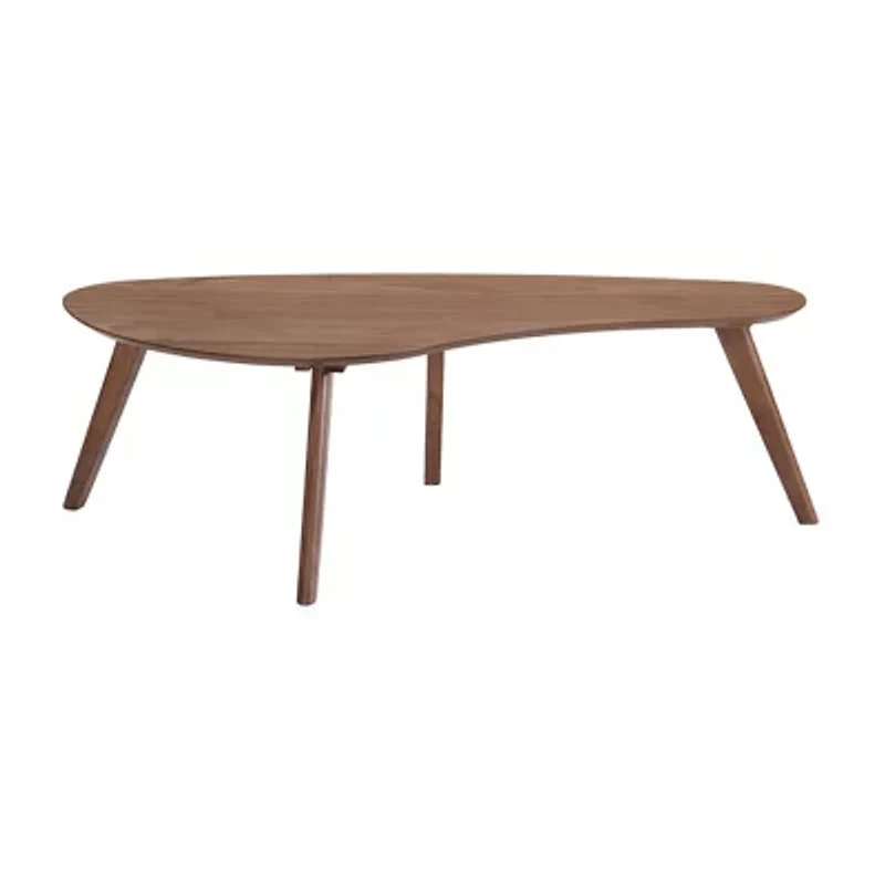 Add to your home with this appealing coffee table. This solid wood coffee table features a curved, teardrop shaped top with round slanted legs. Finished with a walnut brown, this table offers lasting durability through visits from friends and family. Add a minimalist feel to your living space with this stylish piece of furniture, perfect when hosting various gatherings.