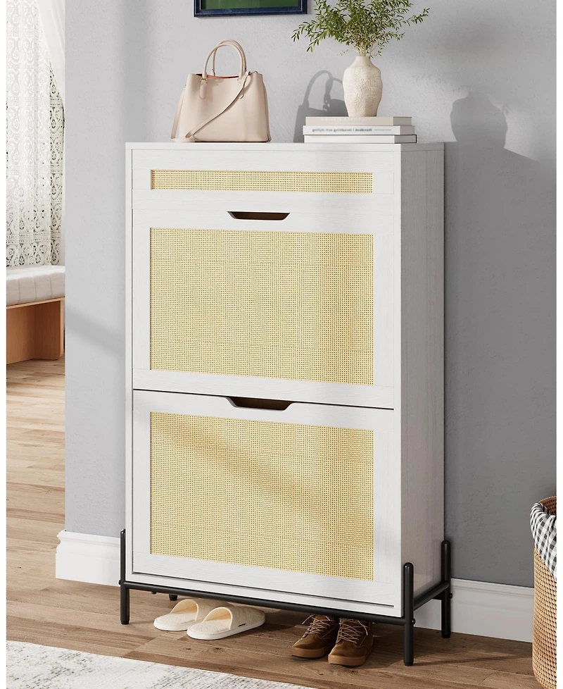 Homfan Rattan Shoe Cabinet Storage with 2 Flip Drawers and Top Drawer, Freestanding Shoe Organizer Wooden Slim Shoe Rack Storage in Franklin, TN