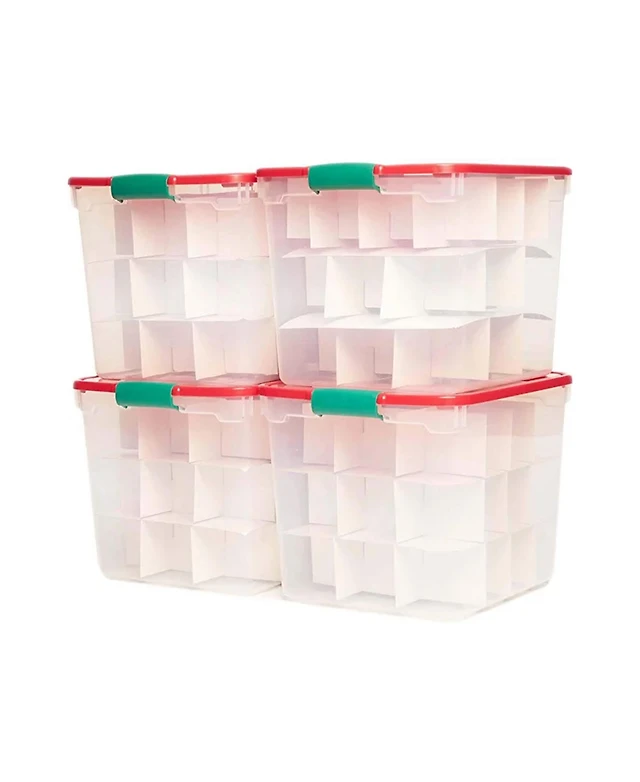 Homz 31 Quart Holiday Plastic Storage Container Bin with Latching Lid, 4 Pack