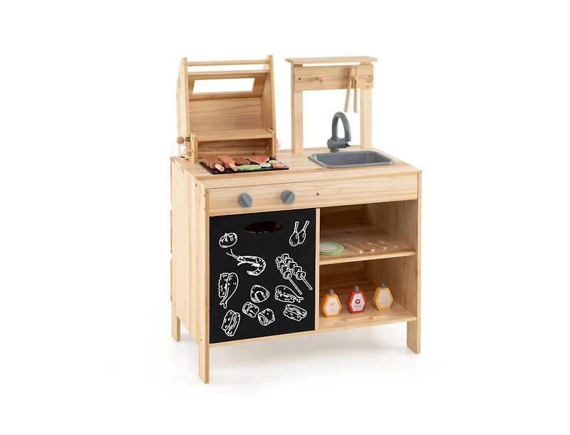Hongge Wooden Barbecue Grill Playset with Chalkboard, Sink, and Cabinet