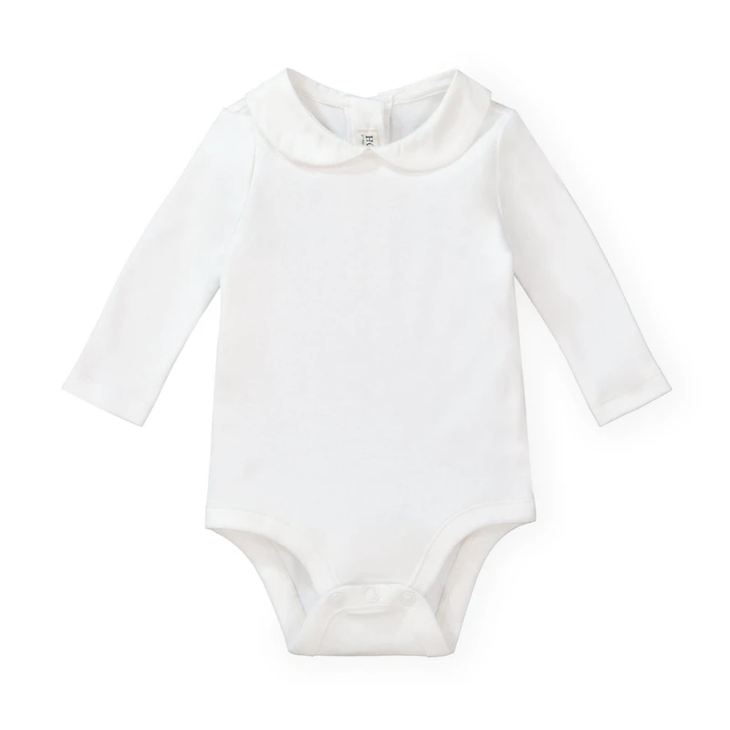 A sweet peter pan collar makes this soft organic cotton bodysuit an easy essential that can be worn on its own, or layered under any of our beautiful sweaters, one-pieces, and dresses.