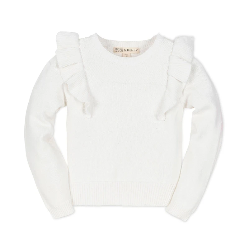 Hope & Henry Baby Girls Long Sleeve Pointelle Yoke Ruffle Sweater