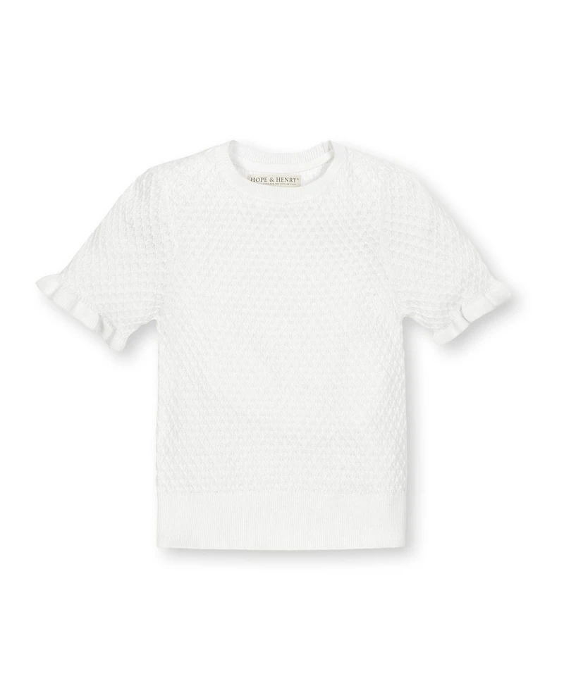 Hope & Henry Girls' Organic Short Sleeve Ruffle Edge Sweater Knit Top, Kids in Franklin, TN
