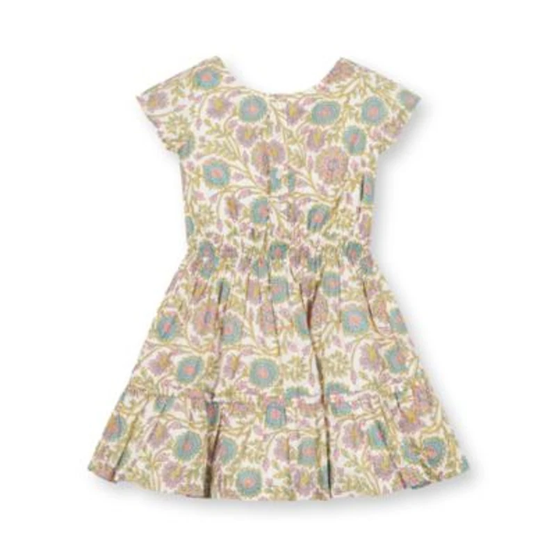 A summertime stunner made of light and breathable organic cotton printed batiste. Our beautiful dress features a flattering split neckline, bell sleeves, an elastic waistband for comfortable fit, and a tiered hem. Fully lined in organic cotton.