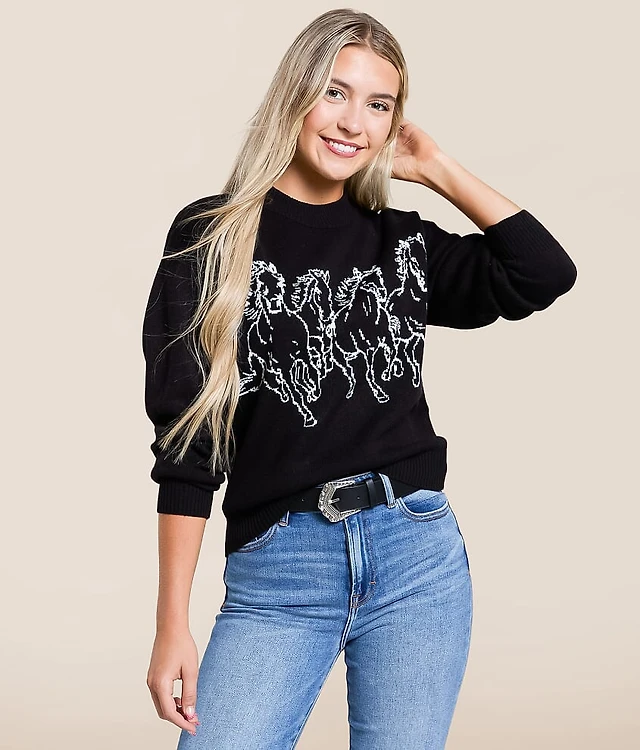 WEST OF MELROSE Womens Horse Sweater - TAN