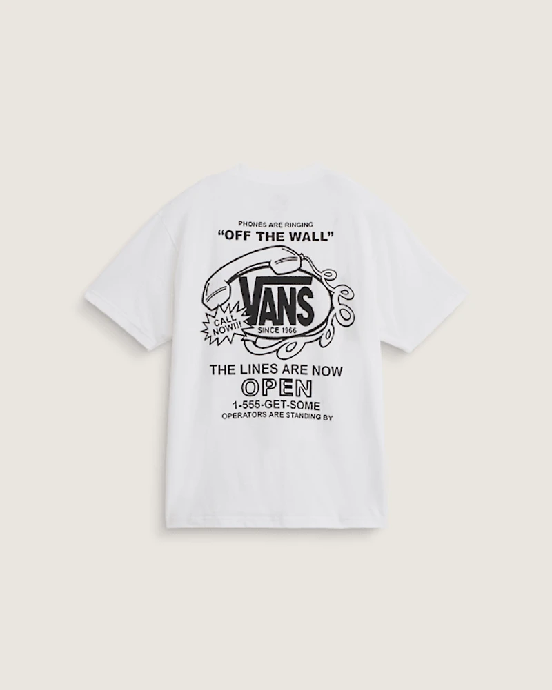 This T-shirt brings Vans' quirky spirit to life with a playful rotary phone graphic and cheeky messaging. The soft cotton construction and classic fit make it an easy everyday choice, while the eye-catching back print adds an extra dose of attitude. It's a fun way to show off your Vans pride with a wink and a nod to the brand's long-running heritage.