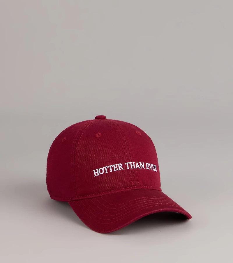 Say less, wear more confidence. This embroidered hat finishes off casual looks with an effortless attitude that feels intentional, not try-hard. Fit & Features Soft cotton fabric with structured feel Classic baseball cap silhouette Curved brim for everyday wear Front embroidered Hotter Than Ever text Adjustable back strap