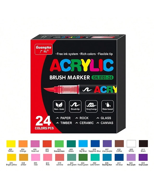 Htutwoo 24 Colors Acrylic Paint Markers, Soft Brush Tip Pens and Markers, Acrylic Paint Pens for Wood, Rock Painting and Diy Crafts Art Supplies