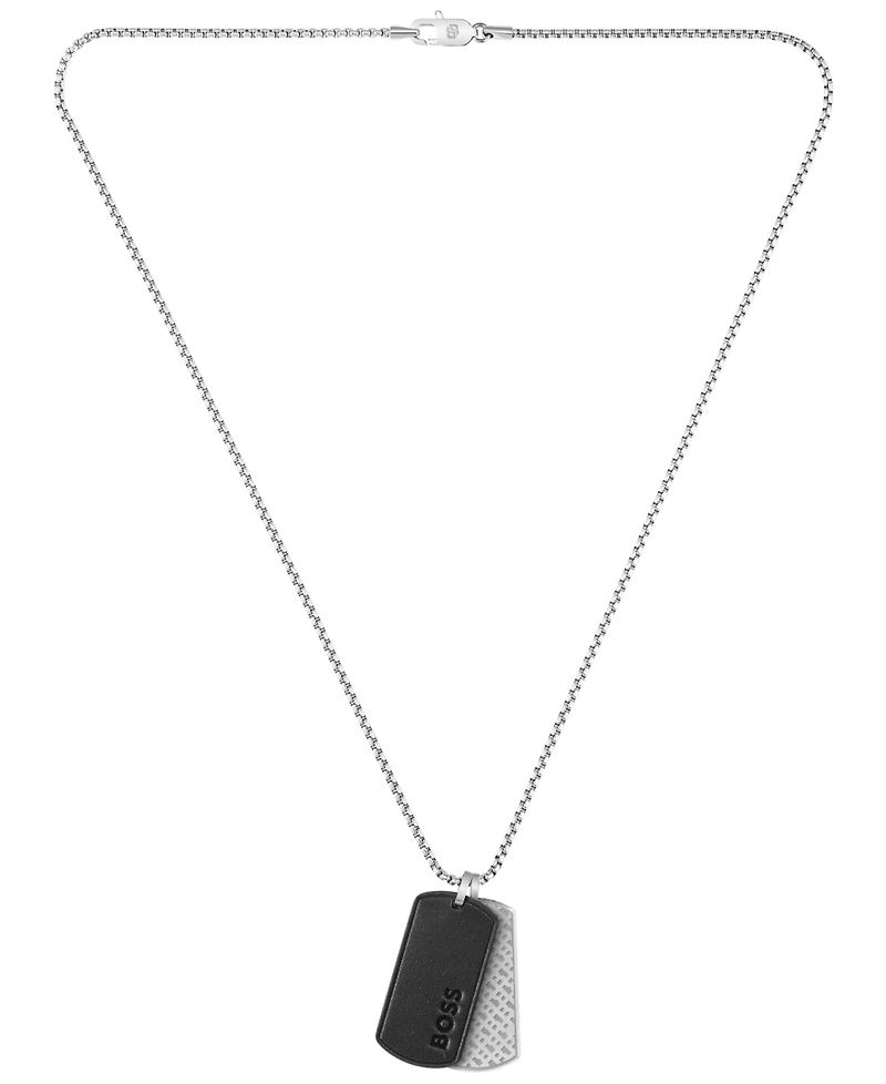 Devon unites the Boss logo and signature monogram in a powerful expression of identity, where brushed metal meets supple leather in a calculated balance of textures. The dual-tag pendant features a reversible design, offering effortless versatility for every look.