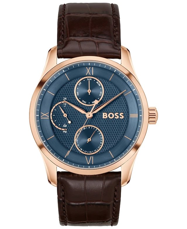 Hugo Boss Men's Principle Master Quartz Multifunction Brown Calfskin Watch, 41mm