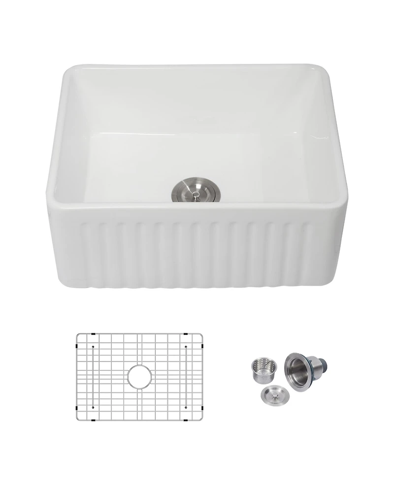 Add rustic elegance and versatile function to any space with this compact 24 inch white farmhouse sink Its reversible apron front durable glazed ceramic and deep 10 inch bowl offer easy cleaning ample space and flexible installation for a custom look