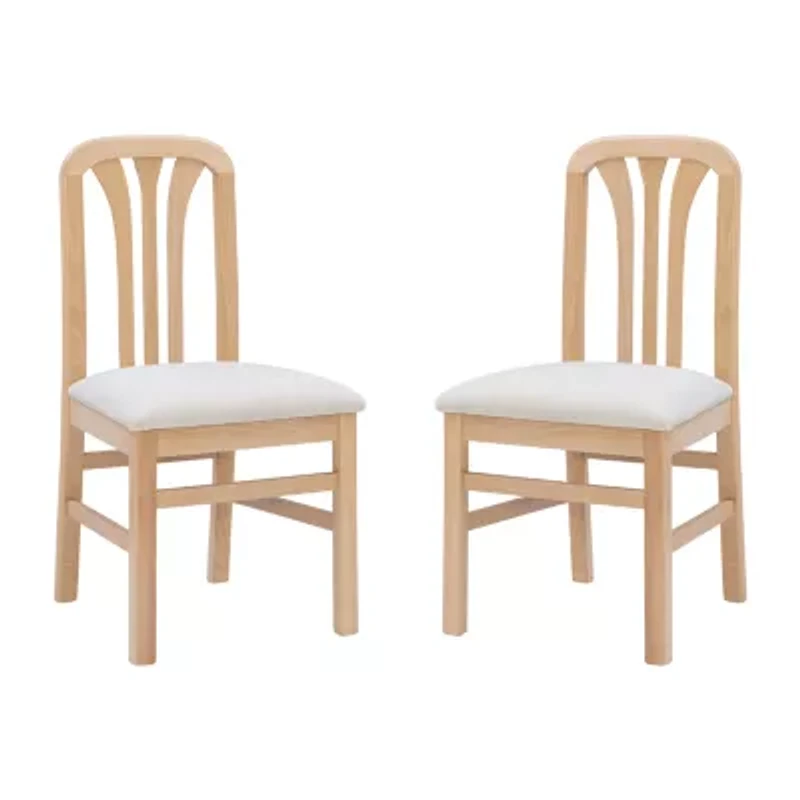 Perfect for curating a cozy cottage atmosphere, this dining chair is inspired by the craftsmanship of rustic traditions. The modest backrest is enhanced by a curved slat back design that draws the eye and provides ample support. The padded seat is upholstered with ultra suede fabric for added comfort and easy cleaning. Constructed of solid beechwood for ensured strength and stability, the frame is sealed and sanded before receiving a glossy lacquer finish. The set of two arrives fully assembled. These chairs support up to 300 lbs. Each and conform to commercial grade standards.