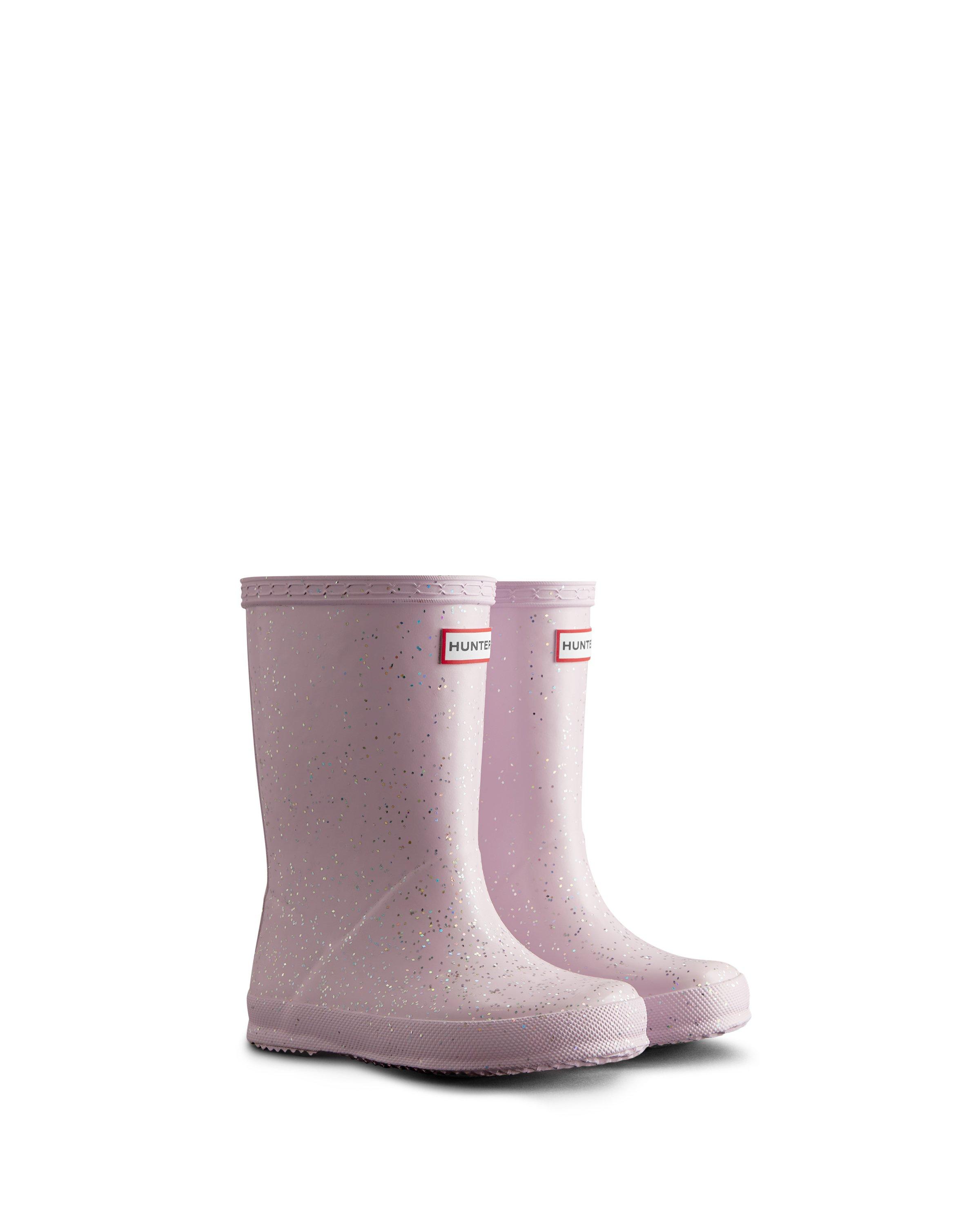 Like sunshine on a rainy day, these glitter boots from Hunter will brighten every moment. Handcrafted and designed with a special tread to reduces slipping, which means they can splash even more. 100% Rubber Fully Waterproof Soft Polyester Lining Rubber Outsole With Original Kids Pattern Excluded From All Promotions And Coupons Use Hunter Boot Care Kit To Keep Boots In Optimum Condition.