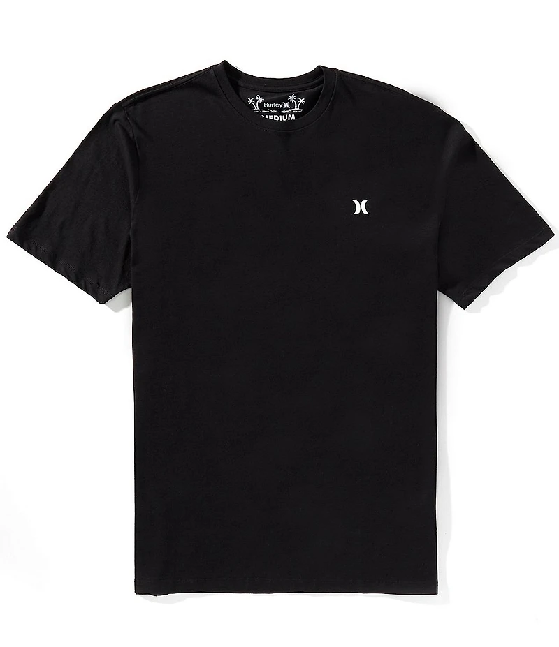 From Hurley, this t-shirt features: Crew neckline Short sleeves Hurley icon logo detail at the chest Custom back neck artwork One & Only clip label Pullover construction Solid color of midweight cotton jersey Machine wash/tumble dry Imported.