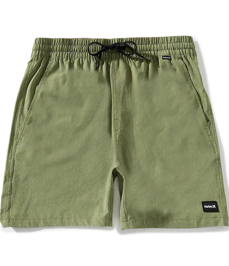 From Hurley, these shorts feature: Drawstring elastic waistband Mesh pocket bags that are designed to drain water and dry quickly Zippered pocket at the wearer's back right Welt pocket at wearer's back left One and Only woven patch and flag label Phantom heat transfer Phantom four-way stretch perforated fabric with DWR coating that helps repel water and provides mobility, breathability, and quick dry 7" inseam 18" outseam Pull-on construction Recycled polyester/polyester/spandex Machine wash/tumble dry Imported.