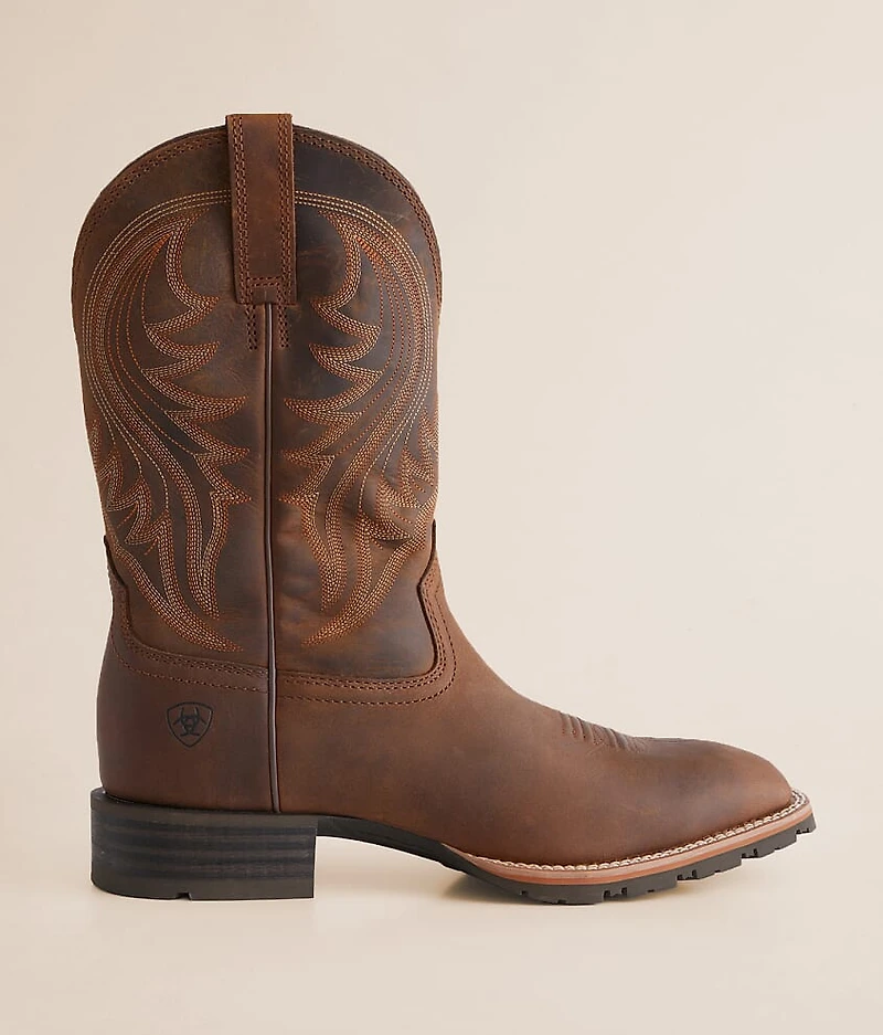 Distressed leather embroidered western boot 10 1/2" shaft, square toe Goodyear welt construction 4LR technology for support and cushioning Removable all day cushioned insole Duratread sole for maximum wear