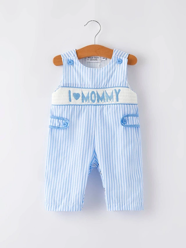 “I LOVE MOMMY”Embroidery Smocking Striped Baby Boys Romper
