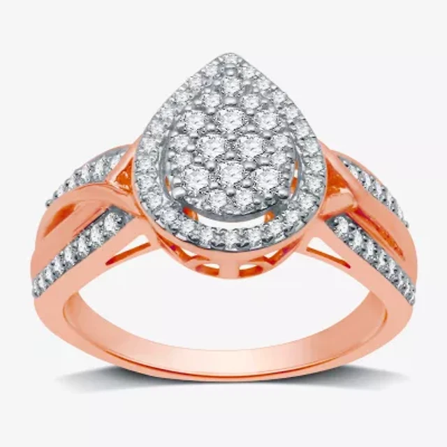 I Said Yes (H-I / I1) Womens 1/2 CT. T.W. Lab Grown White Diamond 14K Rose Gold Over Silver Sterling Pear Halo Engagement Ring