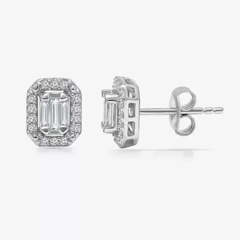 (I1/ I) 1/3 CT. T.W. Lab Grown White Diamond Sterling Silver 8.1mm Rectangular Stud Earrings in Franklin, TN