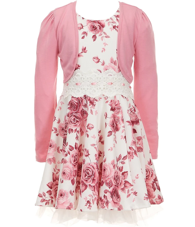 I.N. Girl Little Girls Long-Sleeve Solid Shrug & Sleeveless Floral-Printed Fit-And-Flare Dress 2-Piece Set