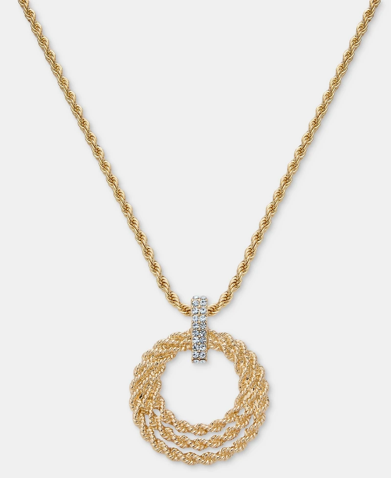 A trio of twisted circles craft the pendant of this I.n.c. International Concepts necklace, secured to a rope chain with a sparkling pave connector. About The Brand: I.n.c. is inspired by fabulous women - always bold, confident, and stylish.