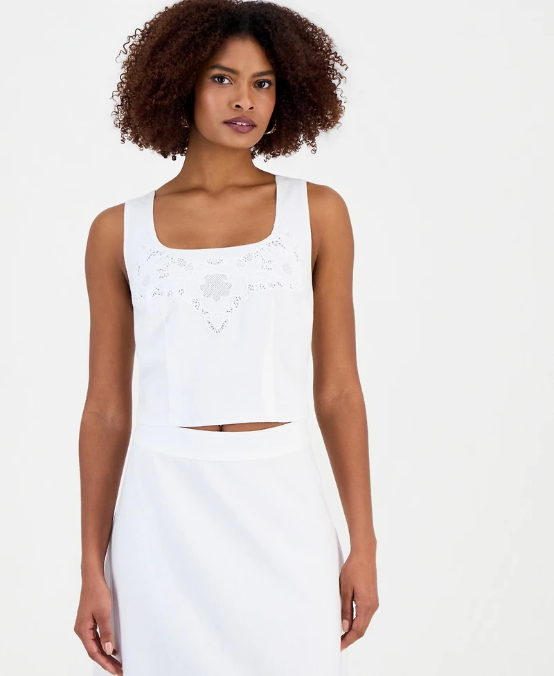 I.n.c. International Concepts Women's Cropped Floral Lace Cotton Tank Top, Macy's Exclusive