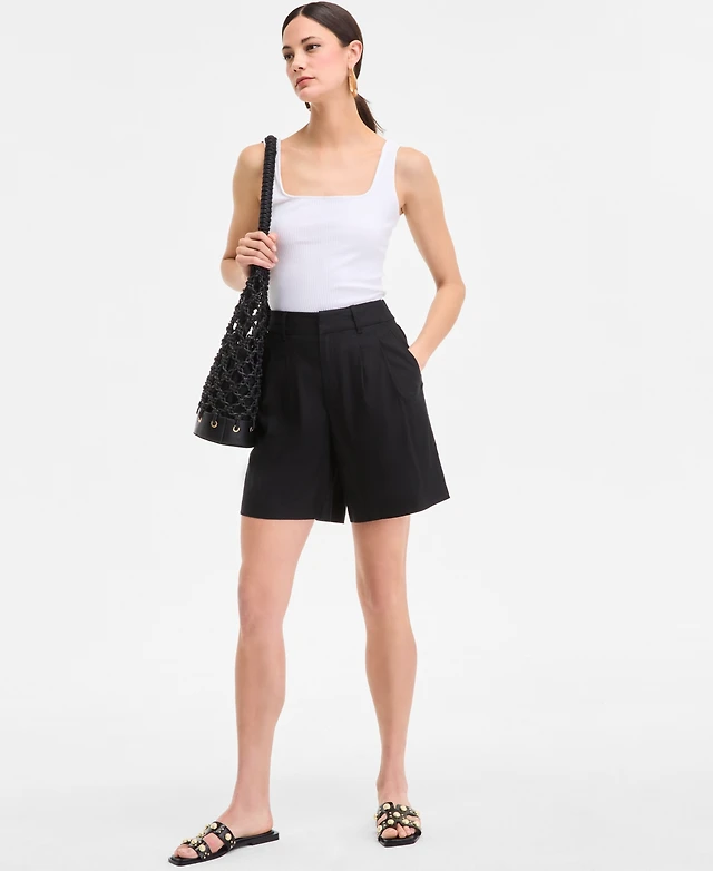 I.n.c. International Concepts Women's High-Rise Pleated Bermuda Shorts, Macy's Exclusive
