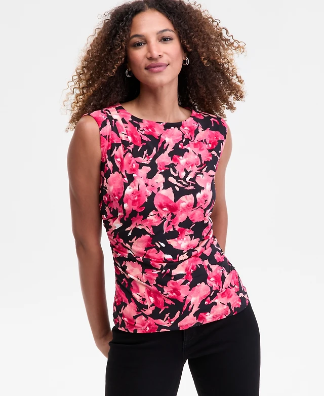I.n.c. International Concepts Women's Pleated-Shoulder Sleeveless Ruched Top, Macy's Exclusive