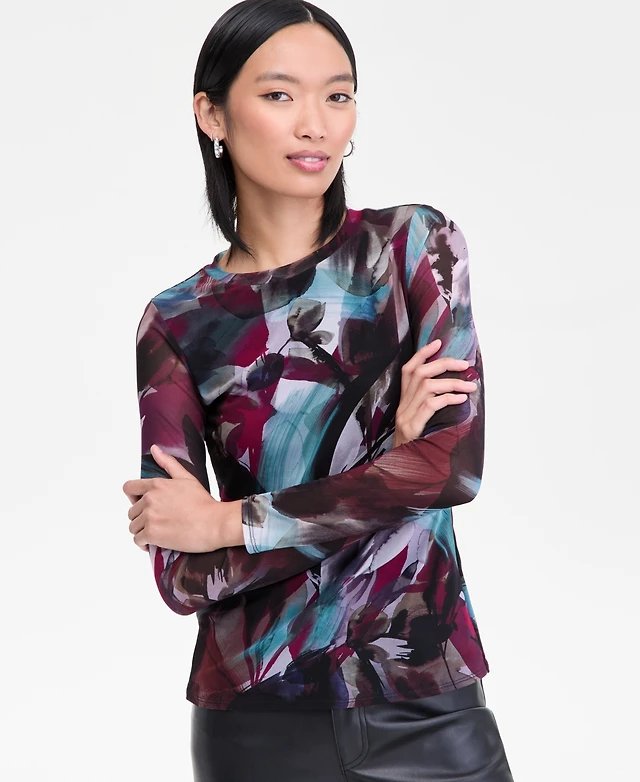I.n.c. International Concepts Women's Printed Mesh Long-Sleeve Top, Macy's Exclusive