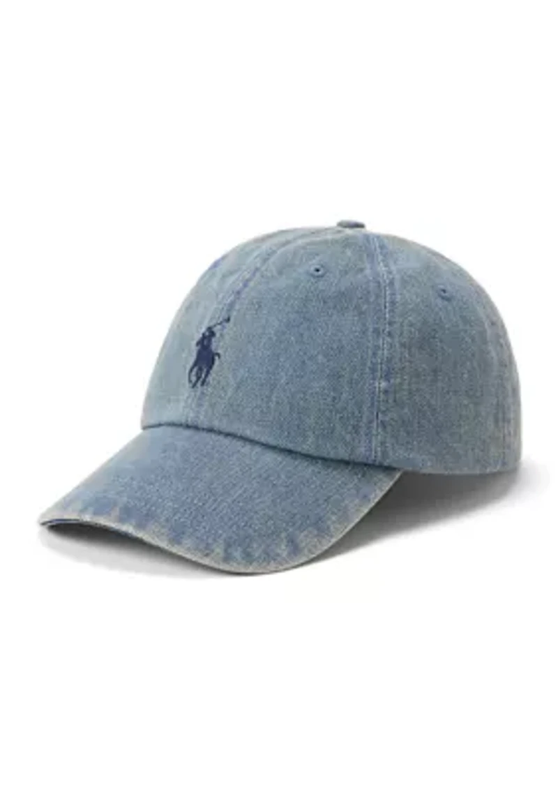 Crafted with denim that is yarn-dyed with true indigo, this ball cap features Ralph Lauren’s signature embroidered Pony. Seamed bill. Six-panel construction. Ventilating embroidered eyelets. Cotton twill sweatband. Signature embroidered Pony at the front. “Polo” embroidery and an adjustable buckled strap at the back. 23.25" inner circumference. 100% cotton. Hand wash or dry clean. Imported. Dyed with true indigo, which may rub off onto fabrics, leather, and upholstery.