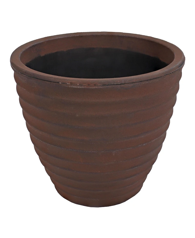 Indoor/Outdoor Round Ribbed Polyresin Planter Pot with Double Wall Design - Rust