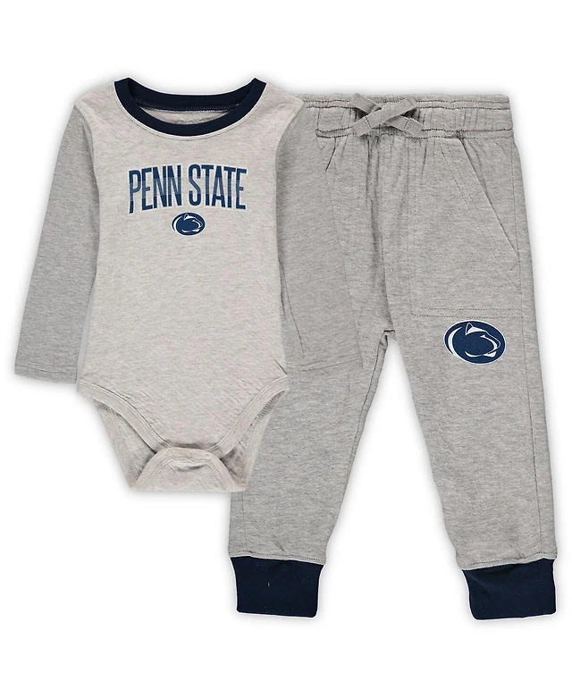 Infant Boys and Girls Wes & Willy Heathered Gray, Navy Penn State Nittany Lions Jie Jie Long Sleeve Bodysuit and Pants Set
