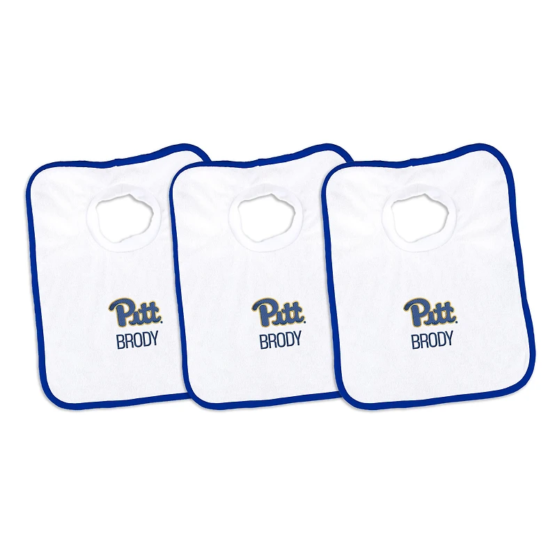 Infant Chad & Jake White Pitt Panthers Primary Personalized 3-Pack Pullover Bib Set in Franklin, TN