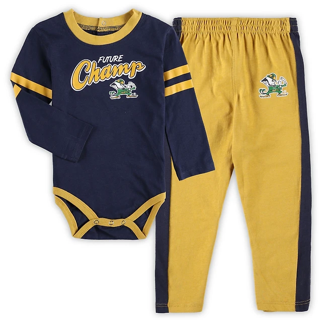 Infant Navy/Gold Notre Dame Fighting Irish Little Kicker Long Sleeve Bodysuit and Sweatpants Set